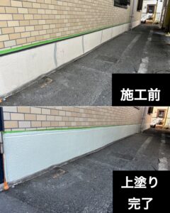 マンション外壁下部の基礎巾木は建物の足元にあたり、雨や汚れの影響を受けやすい部分です。